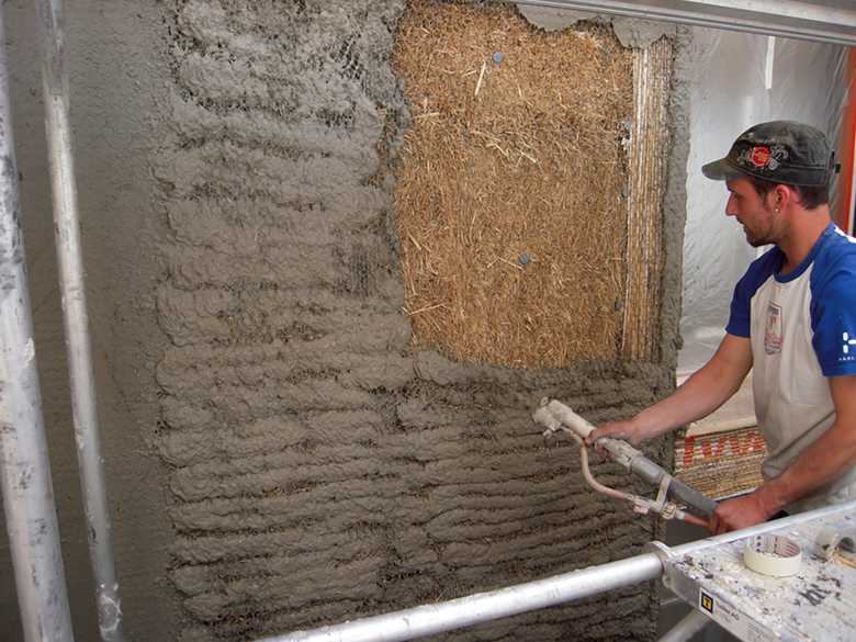 Das Gebäude selbst wurde als eine lasttragende Hybridkonstruktion aus Stroh und mehrschichtigen Kreuzlagenplatten (KLH) aufgebaut. Die Innenräume wurden als reiner Holzplattenbau erstellt. Das Dach wird von den Strohwänden getragen.