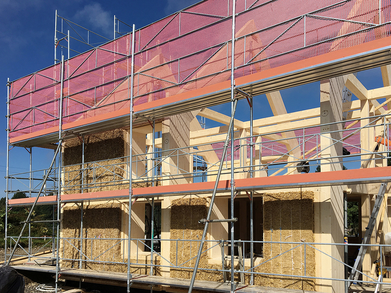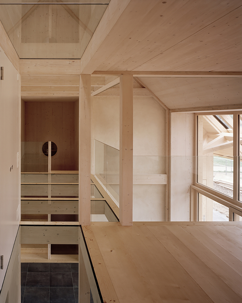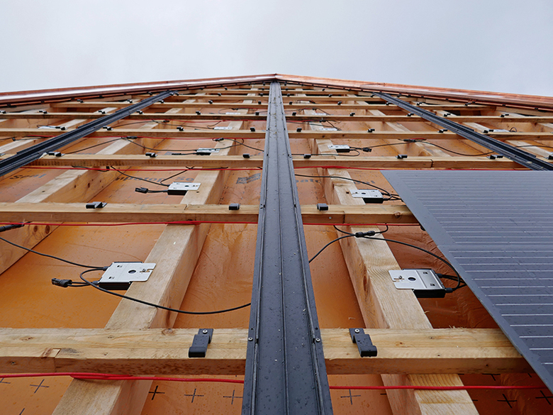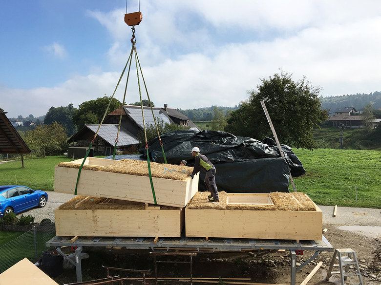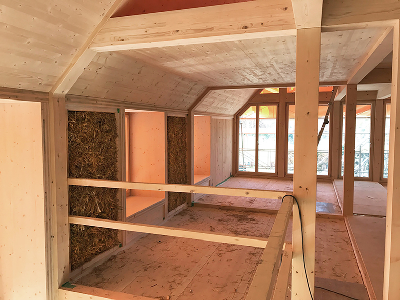 Die Lösung war ein Gebäude, das so wenig Heizung wie möglich benötigt und gleichzeitig so viel Wärme und elektrische Energie wie möglich erzeugt. Im Haus sorgen Glasdecken dafür, dass das Tageslicht vollständig in das gesamte Gebäude eindringen kann. Die Reduzierung der Innenwände ermöglicht es den Eigentümern, in einem grossen modernen Raum zu leben und arbeiten. Die 80 Zentimeter dicken Strohballenwände garantieren minimale Wärmeverluste. Die auf dem Solardach gewonnene elektrische und thermische Energie wird in einem Hausbatteriesystem und einem 5‘000-Liter-Solartank im Keller gespeichert. Bei Bedarf kann das Haus durch die gespeicherte thermische Energie beheizt werden.