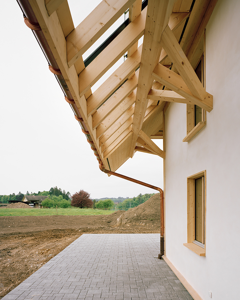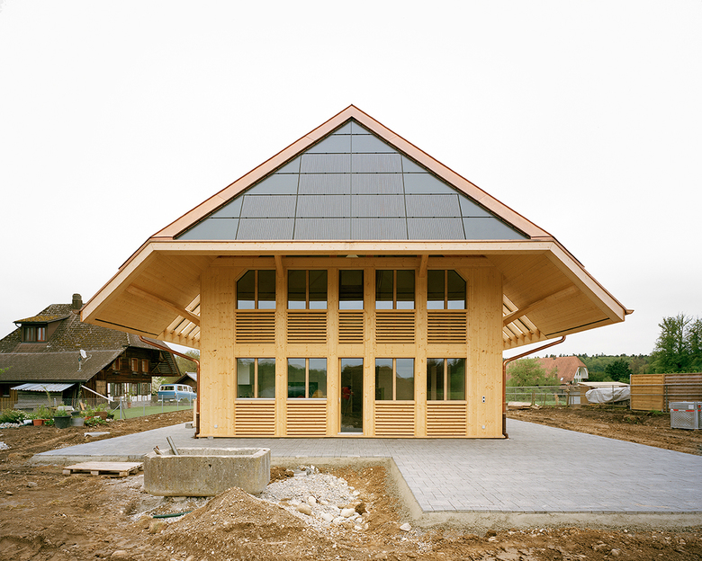 Der Standort liegt inmitten einer weiten und offenen Kulturlandschaft in einem kleinen Dorf im Schweizer Kanton Bern. Um auf diesem Grundstück ein Haus zu bauen, wurde vom Denkmalschutz die Anforderung gestellt, dass es wie ein altes bernisches Bauernhaus aussehen sollte, um sich in seiner Umgebung zu anzupassen. Gleichzeitig wünschte sich der Bauherr ein modernes, lichtdurchflutetes und autarkes Haus.