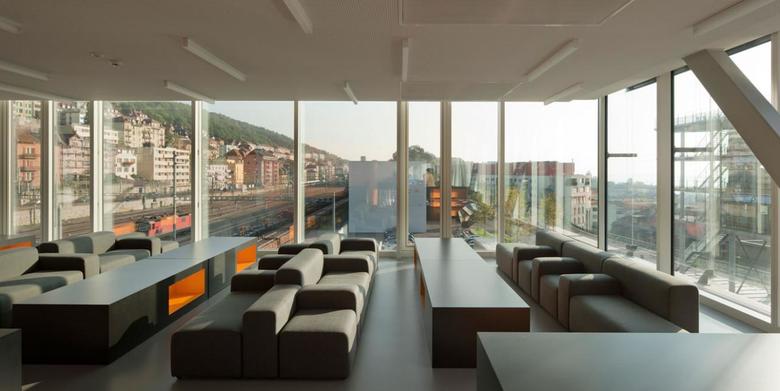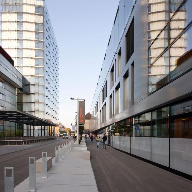 Das 67 Millionen Projekt profitiert von den vielfältigen Vorteilen, die mit diesem strategischen Zentrum in unmittelbarer Nähe des Bahnhofs zusammenhängen, von der optimalen Anbindung an das öffentliche und private Verkehrsnetz, der Nähe zahlreicher Einrichtungen und Dienstleister und der qualitativ hochstehenden Stadtplanung bis zum hohen Personenaufkommen (Reisende, Einwohner, Besucher). Das Gebäude bietet Platz für die Studenten der Abteilungen Engineering und Gesundheit der Haute Ecole ARC.
