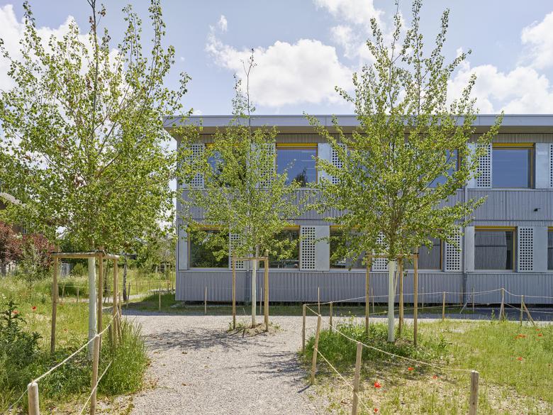 Die insgesamt 128 Holzmodule sind so konzipiert, dass eine maximale Vorfertigung möglich war und dass sie später einfach versetzt werden können. Ein besonderes Augenmerk galt der Vereinfachung der Haustechnik im Sinne von Lowtec. Weil die Korridore als horizontale Lüftungskanäle dienen, fielen die gesamten Rohrleitungen samt Schnittstellen weg. Zudem wurden die Verbundlüfter-Elemente und die Fassaden-Klimageräte für Heizung sowie Kühlung bereits im Werk eingebaut. Ergänzt wird das nachhaltige Haustechnikkonzept durch Wärmepumpen und eine Fotovoltaikanlage.
