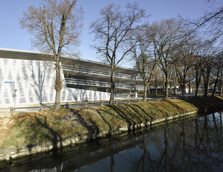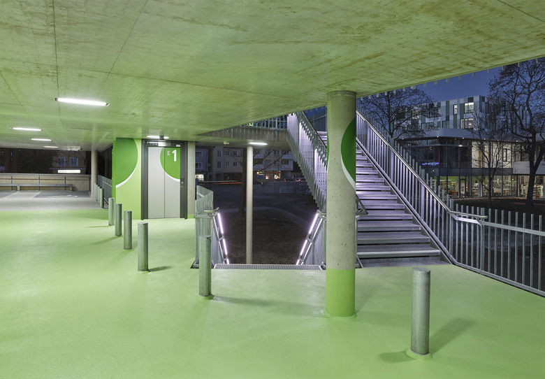 In addition to three park levels above the ground, an underground park level creates a link to the planned residential/commercial building. The car park is accessible from the South through the Friedrich-Ebert-Strasse running parallel to the Mangfall canal which, in the future, will be converted into a road for cyclists.