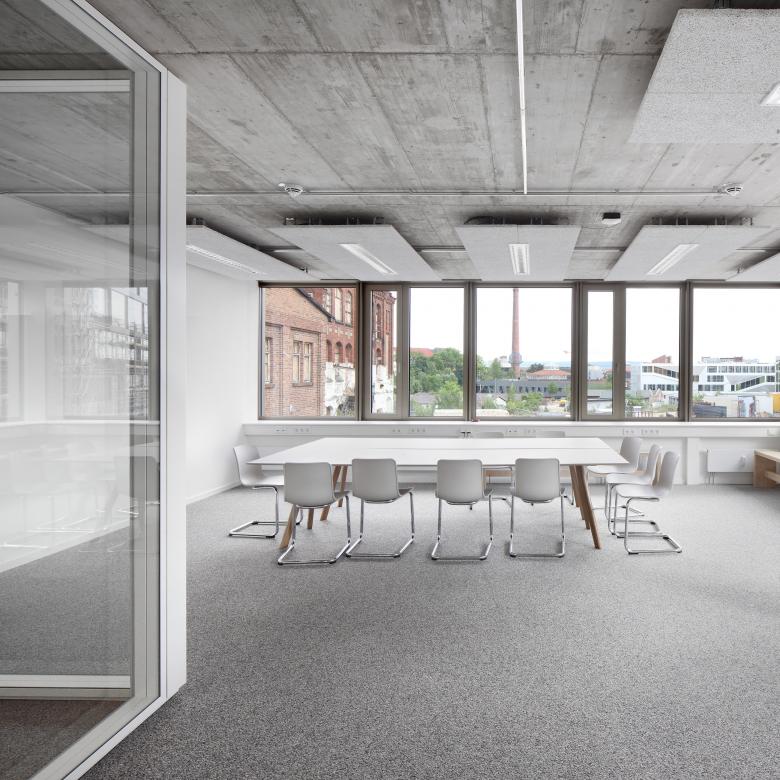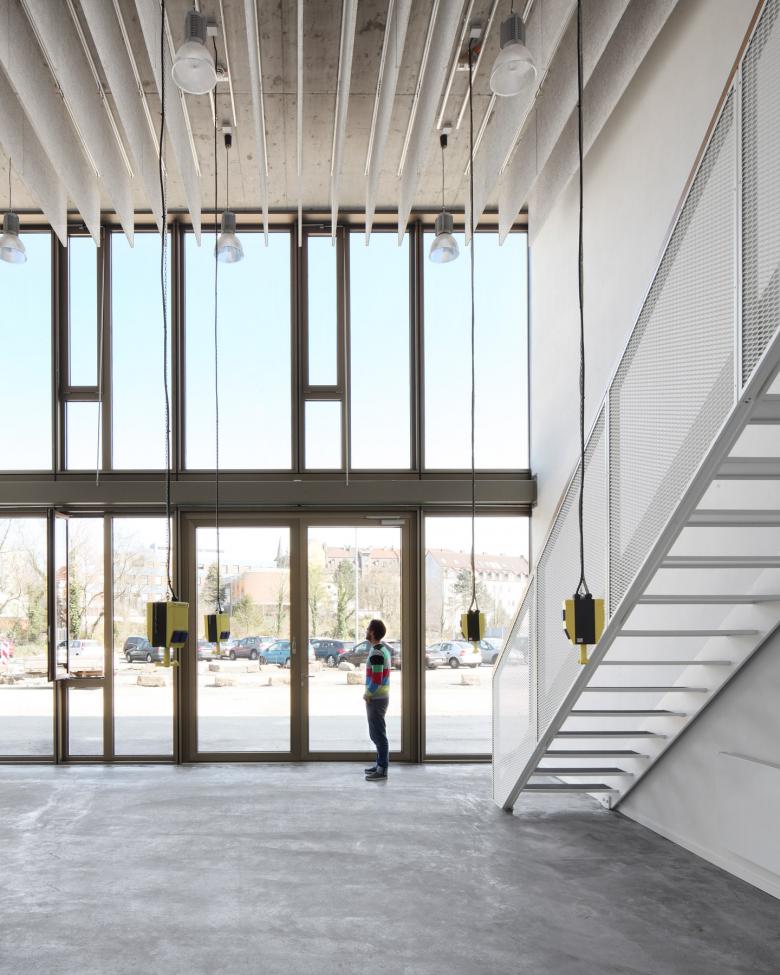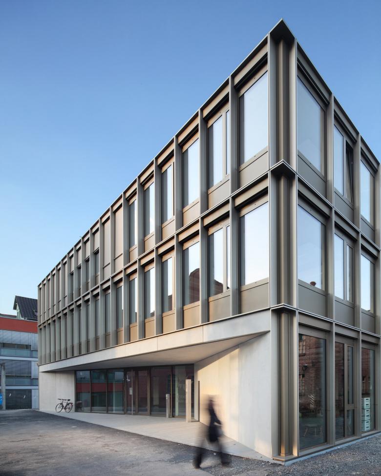 Die im Masterplan für den Campus Nord definierte Grundform des Gebäudes erinnert mit sieben Ecken und zwei Innenhöfen an eine Brezel. Der Neubau vermittelt geschickt zwischen der Höhendifferenz des Campusplateaus und dem Parkniveau an der Ahne. Der Versatz von einem Geschoss ist im südwestlichen Innenhof durch eine Freitreppe erlebbar, die ein zusätzliches Raumangebot für Veranstaltungen und Kurse im Freien bietet. Dieser „öffentliche“ Hof liegt in direkter räumlicher Nähe zu Foyer, Cafeteria und Konferenzbereich. Der nördliche Innenhof erlaubt eine natürliche Belichtung und Belüftung bis in das Sockelgeschoss; die angrenzenden Werkstätten und technischen Büros lassen sich im Sommer in den Hof erweitern. Der Zugang zum Science Park erfolgt im Südwesten - dem Uni-Campus zugewandt - deutlich artikuliert durch einen Einschnitt im Erdgeschoss. Alle zentralen Einrichtungen des Gründerzentrums sind vom Foyer aus auf kurzem Weg erreichbar. Vier lichtdurchflutete Erschließungskerne mit Ausblick in die Umgebung vernetzen das Gebäude in vertikaler Richtung. Über einen Rundgang werden alle Büros horizontal erschlossen. Auf jedem Geschoss bieten großzügige und helle Kommunikationszonen Platz für informelle Treffen und Pausen.