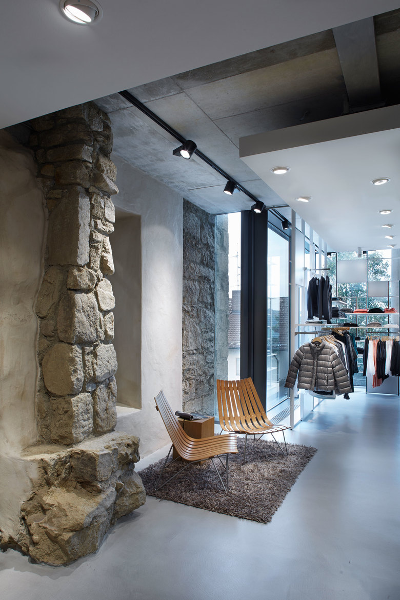 Die Dachlandschaft verbindet Alt- und Neubau wie zwei Schmetterlingsflügel, ehe sich das Hauskonglomerat zur nordwestlichen Grundstücksgrenze im Anschluss an das neue Restaurant „Johanns" gefällig neigt. Das setzt sich bei den Erschließungsflächen fort, die Garhammer über viele Ein-, Aus- und Durchgänge beziehungsreich zum Stadtraum öffnen, was das Modehaus von allen Seiten erfahrbar macht. Das zeigt sich aber nicht zuletzt auch in seinem Inneren, wo der kreative Umgang mit den unterschiedlichen Raumhöhen, den verschiedenen Lufträumen und Verkaufslevels zu differenzierten Erlebniswelten führt.