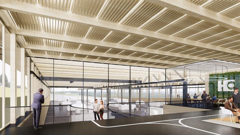 Das innovative Bürogebäude zeichnet sich durch zwei sich überschneidende Höfe aus, die in die Topographie integriert sind und eine durchgehende Verbindung zwischen dem oberen Teil des Campus, in dem sich das Hauptwerk befindet, und dem unteren Teil, in dem sich die neue Hauptadresse des Campus befinden wird, bieten. Dadurch werden alle Mitarbeiter auf einem integrierten Campus mit Blick auf den umliegenden Schwarzwald arbeiten.