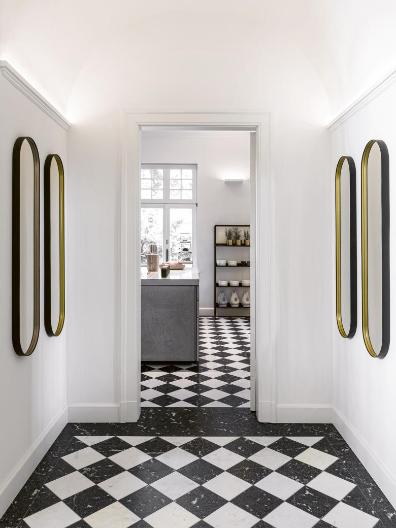 Dem Wunsch der Bauherren, den ursprünglichen Charakter des Gebäudes herauszustellen, sind die Innenarchitekten bis ins kleinste Detail gefolgt. Obgleich das Haus komplett renoviert wurde, konnten bedeutende Elemente des Alten erhalten und in den Originalzustand zurückversetzt werden. Spuren der vergangenen Jahrzehnte wurden teilweise erhalten, manches Mal jedoch auch entfernt: Böden, die nachträglich hinzugefügt waren, wurden durch Fischgrätparkett sowie Naturstein- und Marmorböden mit Schachbrettmuster ersetzt. Nachträgliche Ergänzungen des Stucks wurden entfernt, die Treppe und Türen restauriert.
