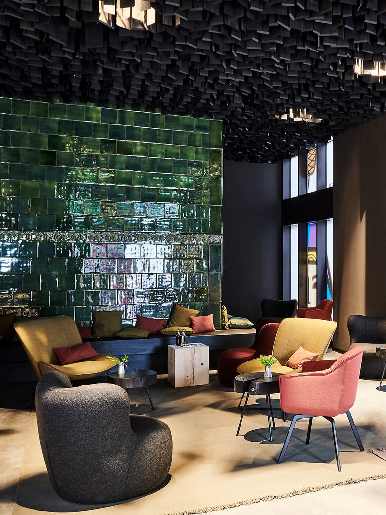 Als weiterer optischer Hingucker fungiert eine riesige dunkelbraune Kuckucksuhr. Den mystischen Charakter unterstreichen die von Hand geräucherten, schwarzen Schindeln, die im Bar- und Loungebereich an der Decke verzahnt sind. Über dem Gastraum gibt die offene Decke den Blick frei auf eine gestaltete Installationsebene. Helle Schindeln aus Fichtenholz machen die Wände – teilweise in abstrakter Form von Tannenzapfen – unverwechselbar. Geweißtes und geöltes Tannenholz formt den massiven Dielenboden. Den Gegensatz zwischen dunkel und hell thematisiert auch die emotionale Lichtgestaltung. Der bekannte Offenburger Künstler Stefan Strumbel interpretiert in den Sanitärbereichen mittels kaleidoskopischer Darstellungen traditionelle Schwarzwaldmotive auf moderne Art neu.