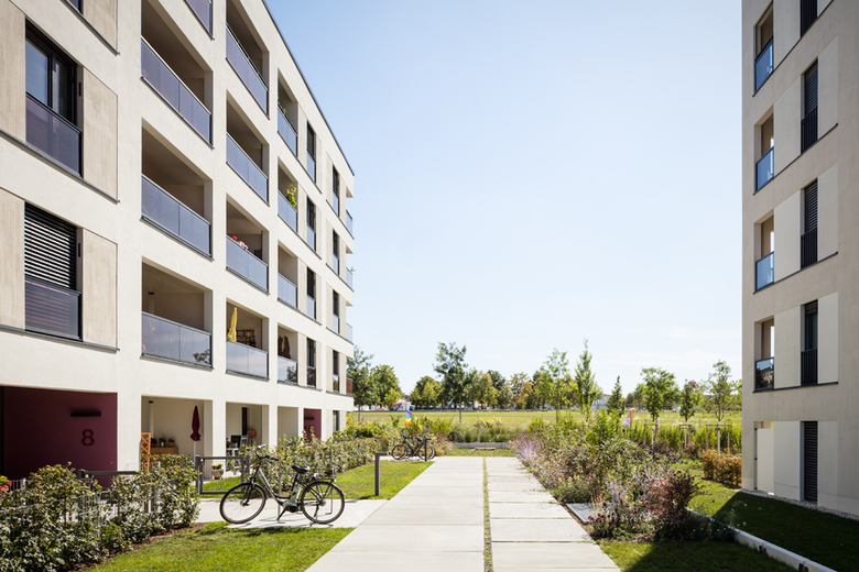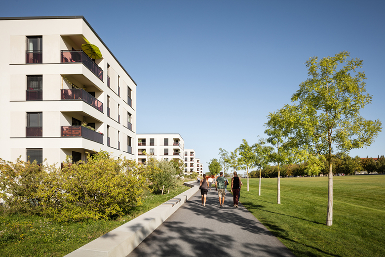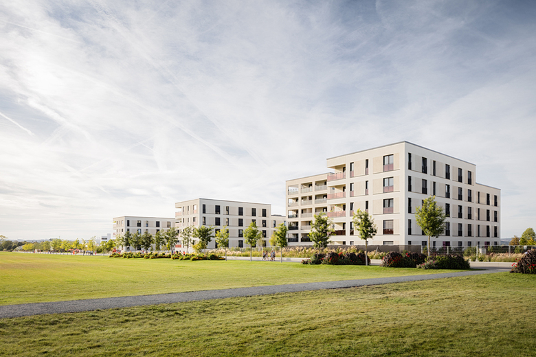 In unmittelbarer Nachbarschaft zur Landesgartenschau 2018 ist ein vielfältiges, attraktives und innovatives Wohngebiet im Wechselspiel zwischen Urbanität und Landschaft entstanden. Der Entwurf fördert den Bezug des gesamten Quartieres zum Freiraum im Süden und inszeniert für die Bewohner durch spezielle Gestaltung der Dachlandschaft den Blickbezug zur Würzburger Altstadt, insbesondere zur Festung Marienburg. Die städtebauliche Konfiguration ergibt sich aus der abwechselnden Positionierung von Punkthaus und Zeile.