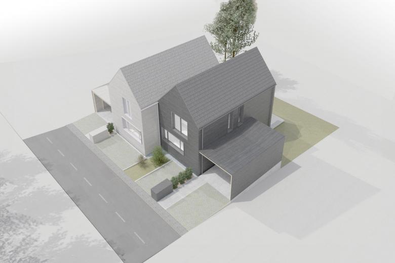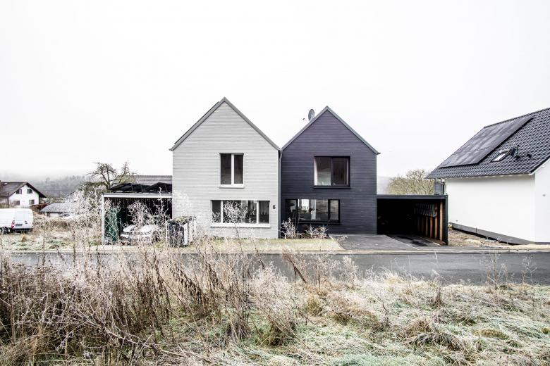 Aus Holz gebaut und hocheffizient, mit einer Heizung für beide Häuser.
