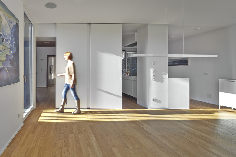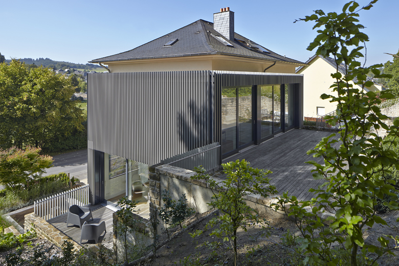 Da die Aluminiumlamellen einfach über die Fenster weitergeführt wurden, entstand der gewünschte Sichtschutz und die nötige Verschattung.