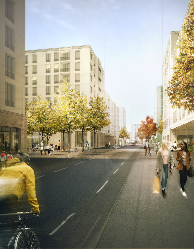 Bern wächst dynamisch. Das Viererfeld ist ein Stück Bern am Rand im Zentrum, werthaltig und wandelbar. Eingebunden in das urbane Gefüge, entwickelt sich die Stadt zwischen drei Fokuspunkten entlang des neuen Boulevards zu einem eigenständigen Quartier weiter. Die städtebauliche Idee definiert primär den öffentlichen Raum – Boulevard, Wege, Plätze, Höfe, Park – und zeigt sich offen für prozesshafte Transformationen innerhalb der einzelnen Baufelder und Gebäudetypologien.