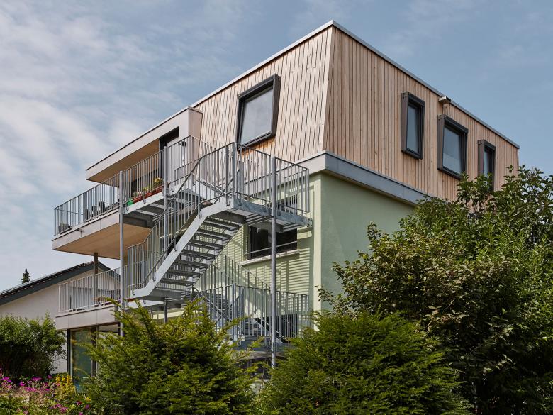 Die 2022 erfolgte Ortsplanungsrevision der Gemeinde Köniz kommt der Forderung nach innerer Verdichtung nach, denn sie macht eine Aufstockung aufgrund der angepassten Gebäudehöhen sowie Grenzabständen möglich. Somit konnte das zweigeschossige Einfamilienhaus aus den 1960er Jahren mit einem zusätzlichen Geschoss in Holzbauweise zu einem Generationenhaus erweitert werden.