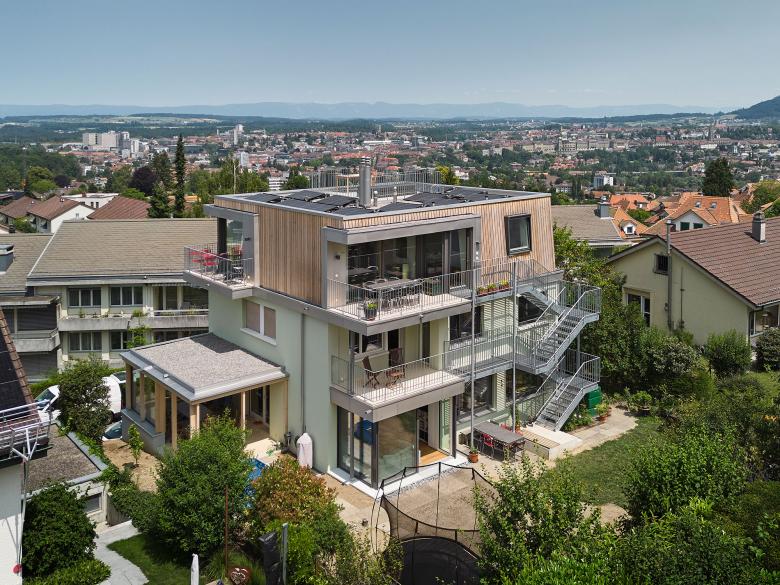 Das Projekt setzt die Idee des Generationenwohnens konsequent um. Dies verdeutlicht u.a. ein neuer Lift, der die Wohneinheiten barrierefrei erschliesst. Synergien sollen genutzt werden: Die südseitig angelegte Gartentreppe verbindet die Geschosse und ermöglicht den direkten Zugang zum gemeinsamen Garten. Das Gebäude ist so konzipiert, dass das Haus zukünftig mit nur wenigen Eingriffen in drei separate Wohneinheiten umgenutzt werden kann und somit eine hohe Flexibilität und Anpassbarkeit bietet.