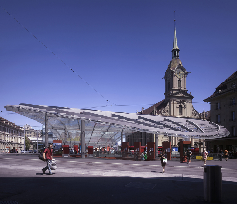 Das Projekt Neuer Bahnhofplatz umfasst verschiedene miteinander verknüpfte Bereiche: Umgestaltung Bahnhofplatz und Bubenbergplatz mit neuen Tram-, Bus-, Auto-,Velo- und Fussgängerbeziehungen. Erneuerung der Christoffelunterführung als attraktive Ladenpassage mit verbesserten Bezügen zu Bahnhof, Platz und Stadt. Sanierung der Gebäudehülle, der Tief- und Gleisbauten. Mit der neuen Verkehrsführung wird Platz geschaffen. Dieser städtische Aussenraum ist auf zwei Ebenen – Platz und Christoffelunterführung – erlebbar und durch vertikale Beziehungen räumlich und funktional verbunden. Auf Platzniveau artikuliert ein gläserner Baldachin den Weg und formuliert das Tor zur Stadt.