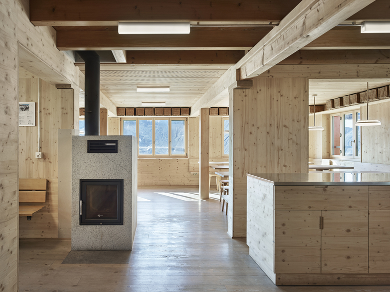 Die Lämmerenhütte – nach einem Lawinenniedergang in den 1990-er Jahren neu gebaut und 2016/17 erweitert – ist in der einmaligen Berglandschaft zwischen Gemmipass und Wildstrubelmassiv auf einem Felsplateau auf 2500 Metern über Meer verortet. Die einfache und kompakte Form, mit entsprechender Konstruktion und Materialisierung in Stein und Holz, gibt der Hütte eine hohe Symbolkraft und strahlt eine angenehme Atmosphäre aus.