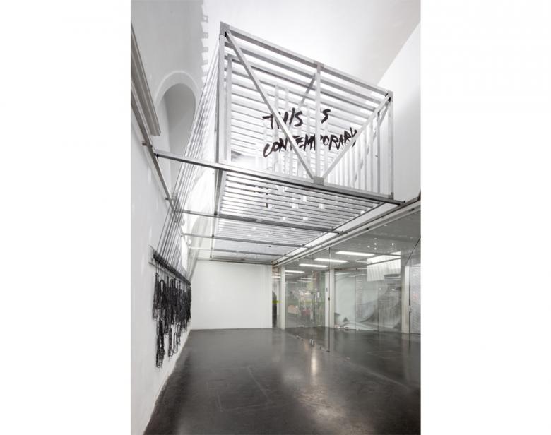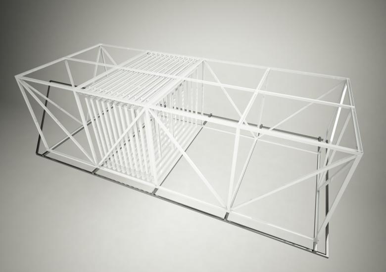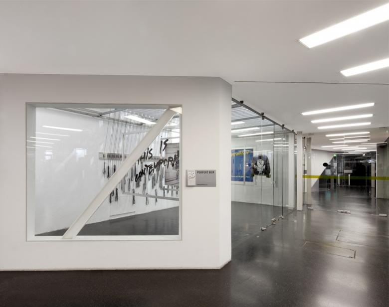 Hybridraum: Die PERFEKT BOX befindet sich im MuseumsQuartier, dem kulturellen Herzen Wiens. Es handelt sich dabei um ein modulares, dynamisches Raum- und Ausstellungskonzept. Siebzig unterschiedlich dimensionierte Aluminiumrahmen, die über Seilsysteme positioniert werden können, befinden sich in einer Aluminiumbox mit den Maßen 1,70 x 6 x 2,50 Meter. Die Rahmen dienen als vielseitig inszenierbare Displayflächen, woraus sich ein flexibler Ausstellungs-, Präsentations- und Arbeitsraum ergibt, der sich immer wieder neu an die jeweiligen Inhalte anpasst. Die PERFEKT BOX bietet optimale Raumnutzung und auf den Zweck abgestimmte Lösungen.