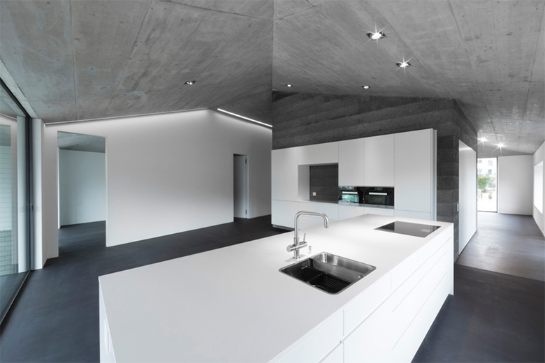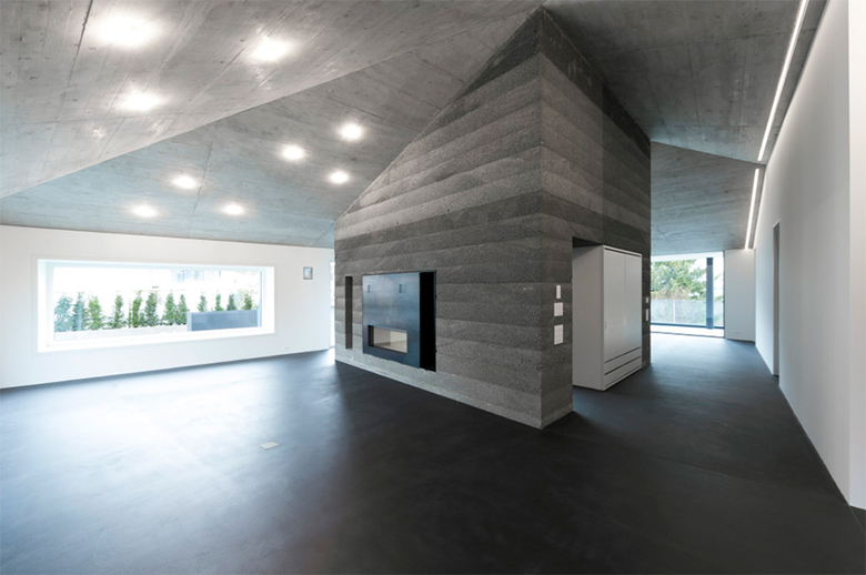 Das puristisch geplante Zweifamilienhaus im bündnerischen Flims setzt ganz auf nüchterne Gestaltung und unaufgeregte, anspruchsvolle Details.