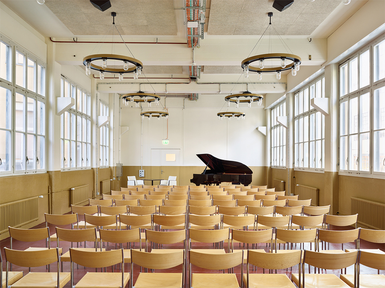 Durch den mehrjährigen Umbau der Tonhalle Zürich ist die Tonhalle Maag nun Interimsspielstätte für das Tonhalle-Orchester Zürich zwischen 2017 - 2020. Entstanden ist eine Symbiose aus Industrie und Kultur, in der gut 1'200 Menschen in den Genuss erstklassiger Konzertmusik kommen. Neben der Tonhalle als Herzstück entwickelten wir die Beleuchtung des Foyers / Entrées (ehem. Härterei), das Vestibule , Bareinheiten, die Musik- und Einspielzimmer, Aufenthaltsräume und alle Büroräume über 4 Geschosse. Für die gesamte Anlage wurden fast ausschliesslich Sonderleuchten geplant und produziert. Inklusive Modelle, welche durch die Denkmalpflege genehmigt werden mussten.