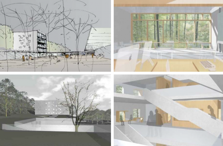 An der Waldkante entsteht ein "leuchtender Baustein" der den Ort an dieser Stelle neu definiert und zusammen mit einem Sockelbau, als verbindendem Element das „neue Schulforum“ bildet. Wesentliches Ziel dabei ist es, den Bestand und den Tagesbereich forumsähnlich in ein eigenständiges und selbstbewusstes, aber differenziertes Schulensemble mit ein- zubinden, dessen neuer „Denkturm“ ein signifikantes, städtebauliches Zeichen setzt, ohne den Bestand zu dominieren. Diese Grundidee soll einen wichtigen unverwechselbaren Beitrag zur Identitätsstiftung der „Gemeinschaftsschule“ leisten. Die lichtdurchfluteten Klassen orientieren sich konsequent zum Grün hin.