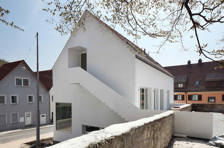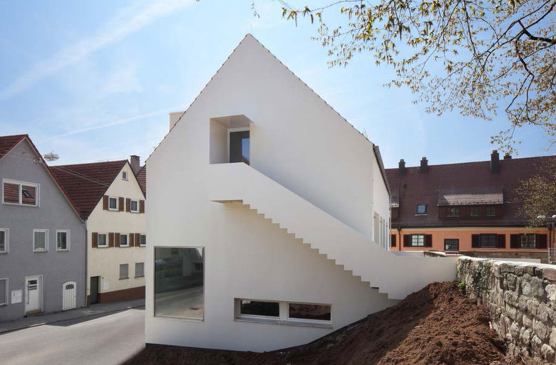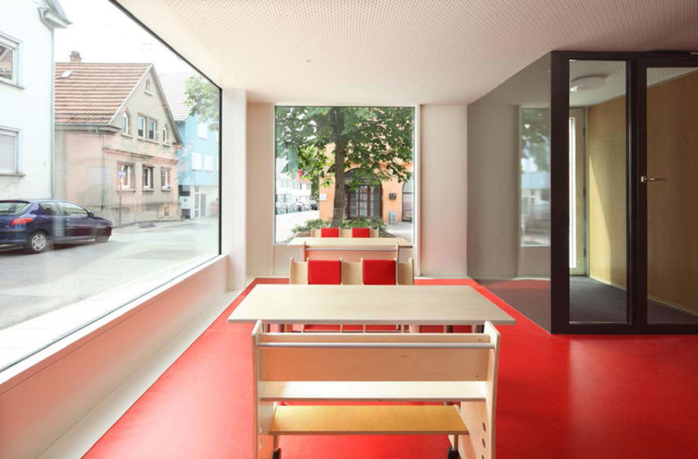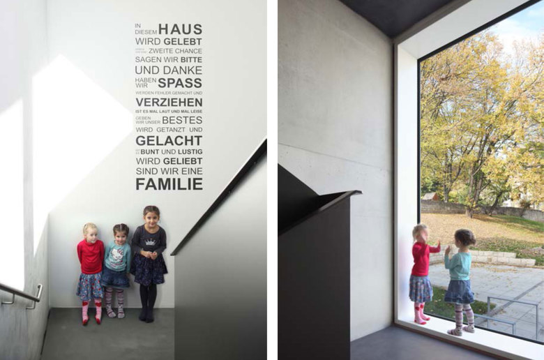 Im Herzen des historischen Ortskerns von Untertürkheim, angrenzend an einen „aufgelassenen Friedhof“ mit denkmalgeschützter Mauer aus dem 16. Jh. entstand eine „2-gruppige Tageseinrichtung für 30 Kinder“ auf vier Ebenen. Das enge Baufeld mit schwierigem Baugrund und die gleichzeitige Sanierung und Sicherstellung der „denkmalgeschützten Friedhofsmauer“ waren eine große Herausforderung in der Umsetzung und Abwicklung der Baustelle. Alle Planungen und Ausführungen waren immer in enger Abstimmung mit dem Landesdenkmalamt erfolgt. Innerhalb dieses engen Korsetts entsteht so ein einfaches „Haus für Kinder“ mit Zitaten an die vergangene Bautradition mit sparsamen Details. Ziel war es den alten Ortskern an dieser Stelle aufzuwerten und neu zu interpretieren, ohne die Tradition im Ort zu negieren. Das Gebäude fügt sich mit seinem Volumen maßstäblich in die umgebende Bebauung ein und nimmt typologische Elemente des Ortsbildes im Entwurf selbstverständlich auf.