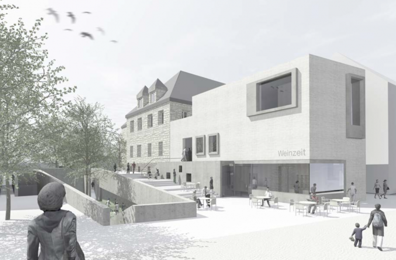 Der Ort verlangt einen respektvollen Umgang mit dem Denkmal - einerseits das historische Schloßgebäude „aus der Renaissance“ über alle Ebenen mit „neuem Leben“ zu füllen und in das Gesamtkonzept „Weinkompetenzzentrum“ mit einzubinden - andererseits den bereits mehrfach überbauten östlichen Anbau stadträumlich zu stärken und das Schloss näher an den Stadtraum zu rücken. Zur Altstadt wird mit der neuen Erschließung ein neuer „Kopfbau“ geschaffen, der zur Obertorstraße hin eine klare Raumkante bildet und somit den Stadtraum deutlich aufwertet.