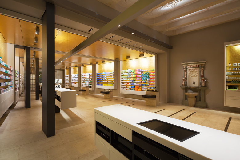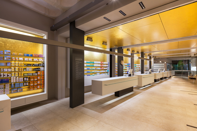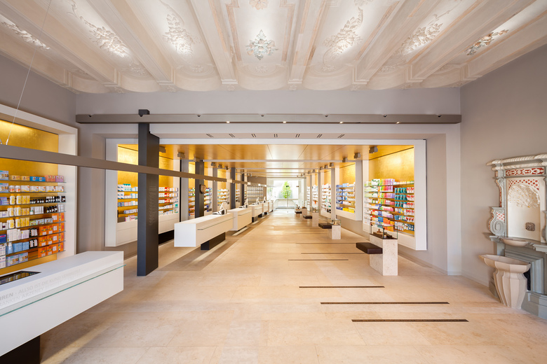Umgestaltung der „Löwen-Apotheke“ in Trier, der ältesten Apotheke Deutschlands (1241). Das Gebäude ist ein Einzeldenkmal. Im Eingangsbereich (Diele) ist eine Kölner Stuckdecke erhalten, die 1690 von italienischen Künstlern gefertigt wurde. Der Architektenentwurf ist eine minimalistische Apothekeneinrichtung mit klarer Linienführung und natürlichen Materialien.