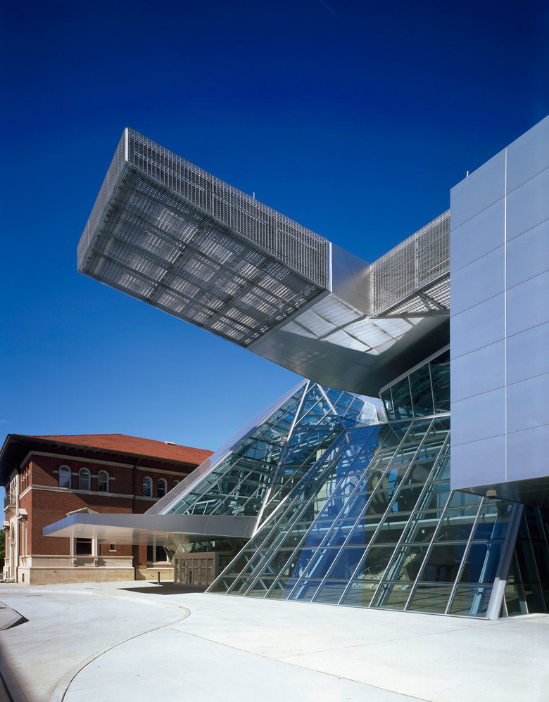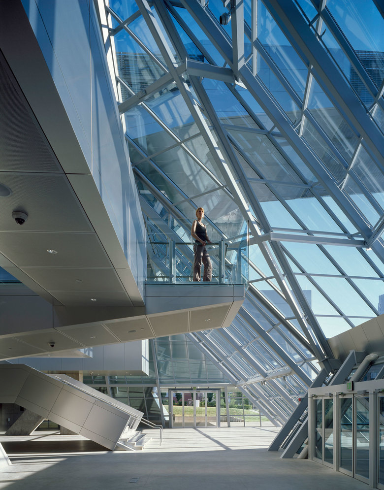 The building is broken up into 3 parts: the Crystal, the Gallery Box, and the Roof Cloud. The Crystal serves as the main entry and operates as an orientation and connection space serving both the new and old buildings. It is a grand, flexible space that can also be used for banquets, arts festivals, and events hosted by outside organizations.