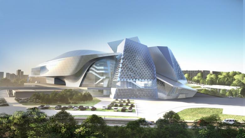 The Museum and Theatre Complex will create a new Cultural Hot-Spot and will become the future architectural landmark in the cityscape of Kemerovo. The Project Site is located east of the city center between Sovetskiy Prospekt and Pritomskiy Prospekt and is embedded in Iskitimka river course landscape. The exposed location of the site provides an all-round visibility and presence of the building in the urban setting. Together with the future embankment development, the Opera will be connected with a spacious network of public promenades and squares.
