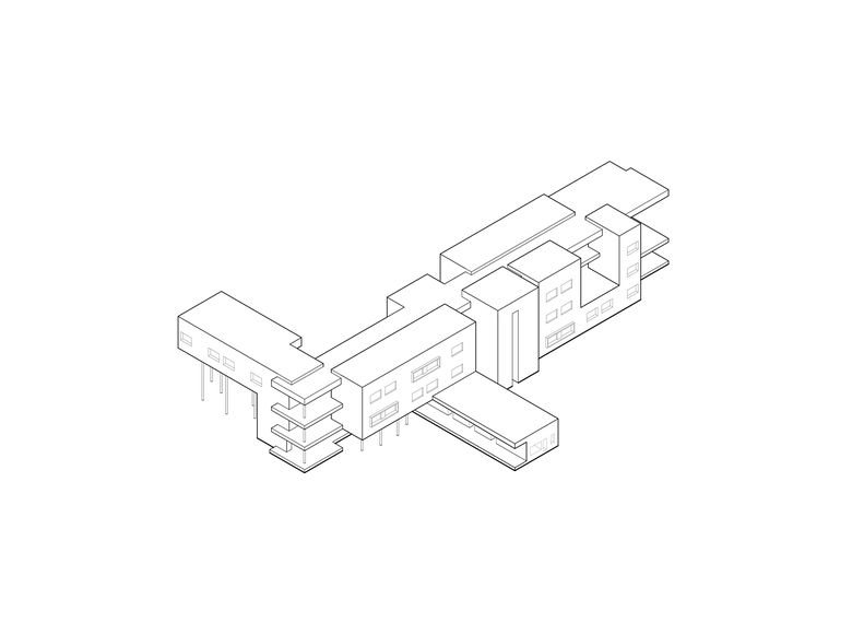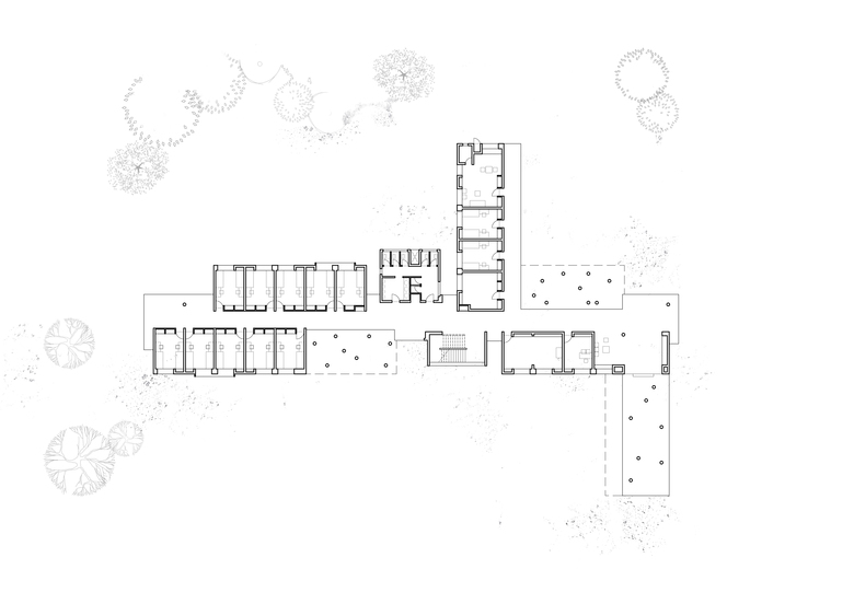 The spatial vocabulary evolves out of the dynamic action of modular blocks of rooms; each block ‘swivels’, ‘scoops’, or ‘slides’, and plugs-in to a central public spine. The concrete screens, inspired by traditional jails, add another layer to this ensemble. Common spaces of varying scale thread through entire building knitting together shaded nooks, delicate terraces overlooking the landscape, dramatic overhangs, canopied areas, and multilevel arenas for students to occupy.