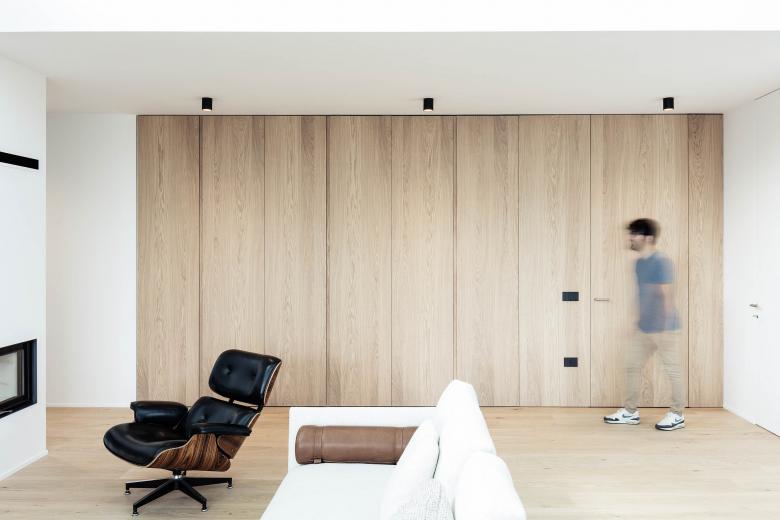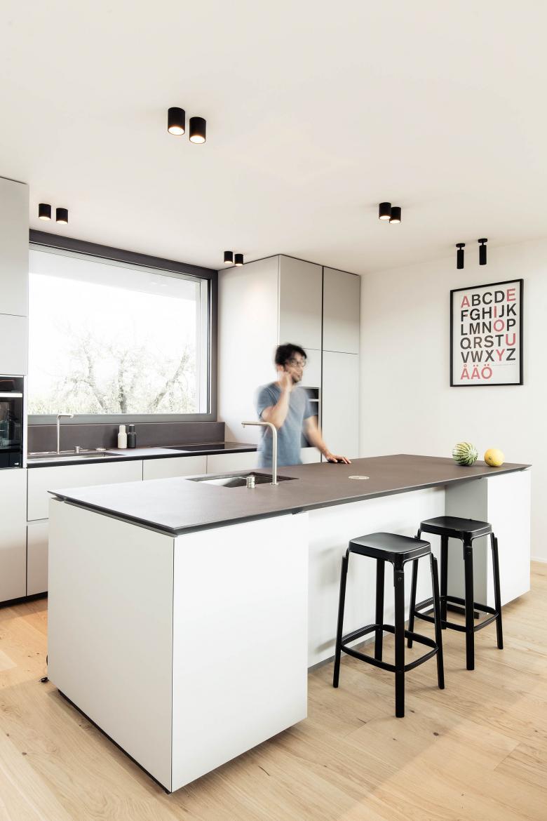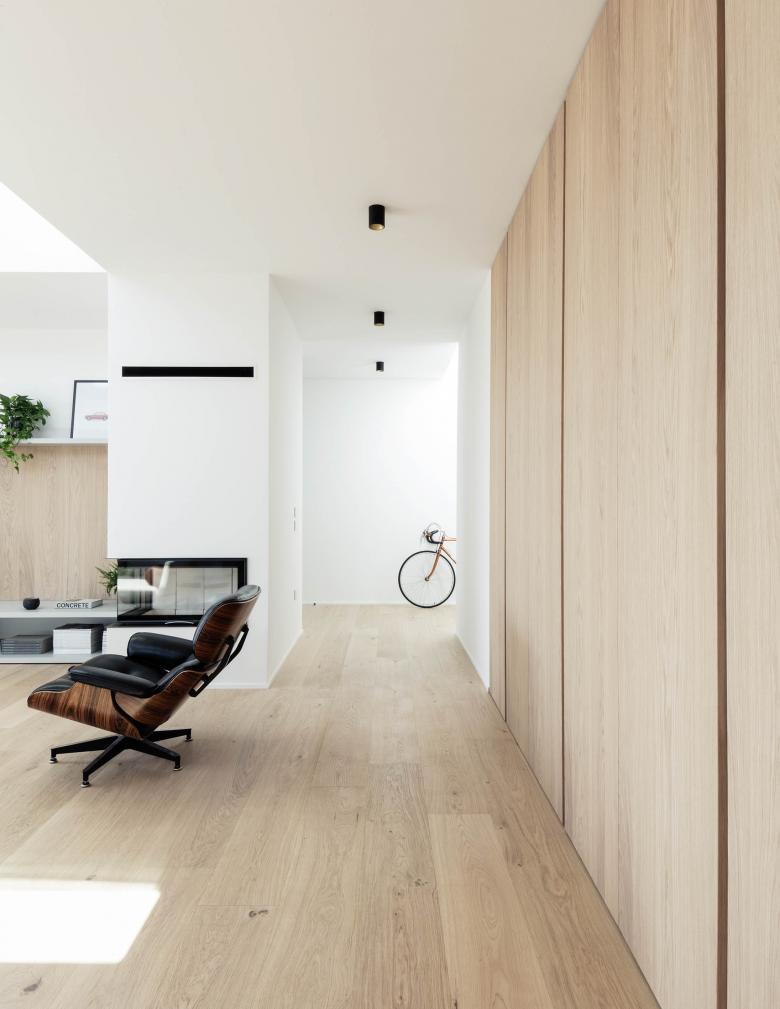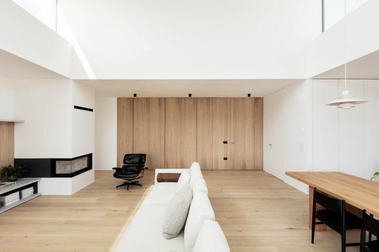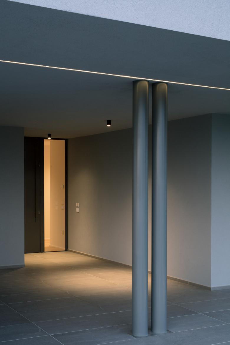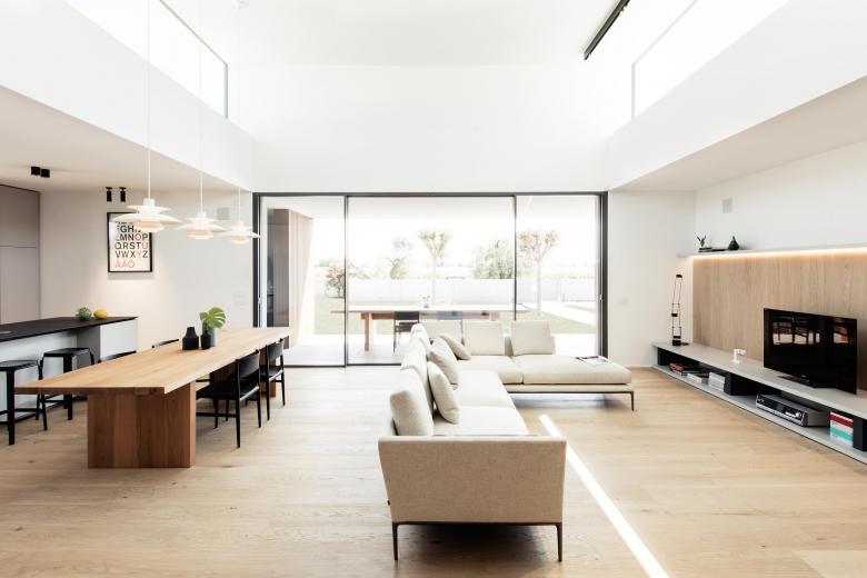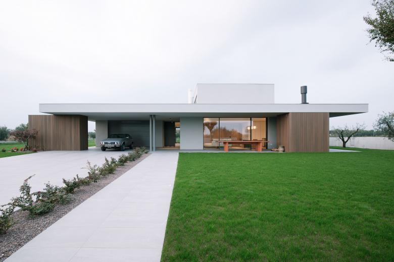L'edificio è disposto in tre volumi definiti dalla destinazione d'uso e raggruppati sotto un'unica copertura piana. L'impianto distributivo trova luogo nello spazio tra i tre volumi. Il soggiorno è caratterizzato da una doppia altezza da cui penetra luce naturale zenitale.