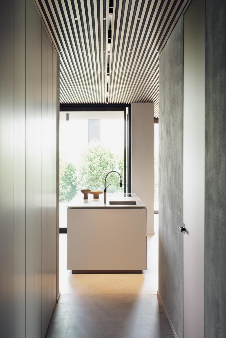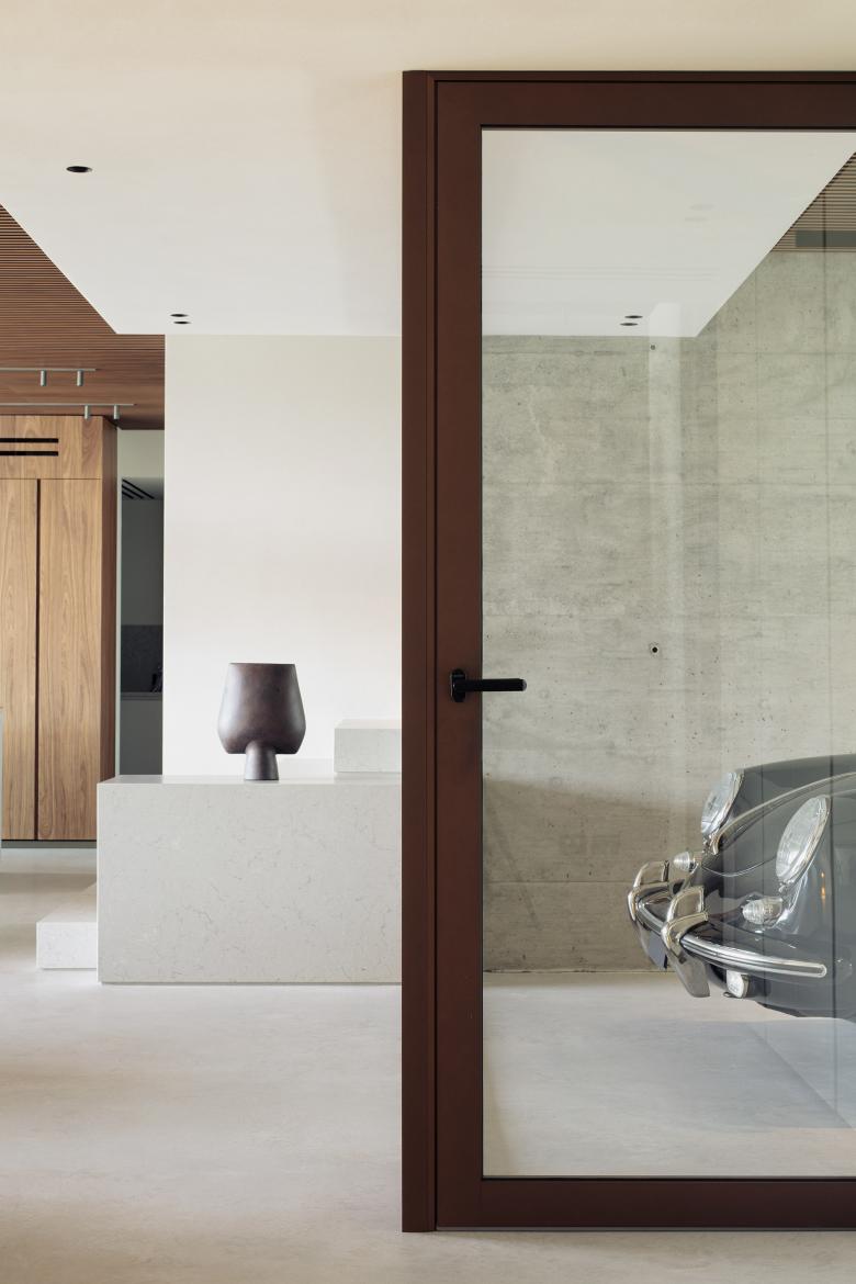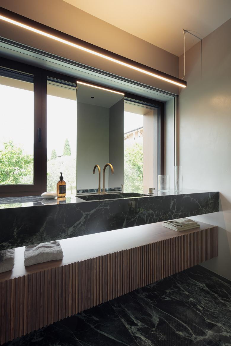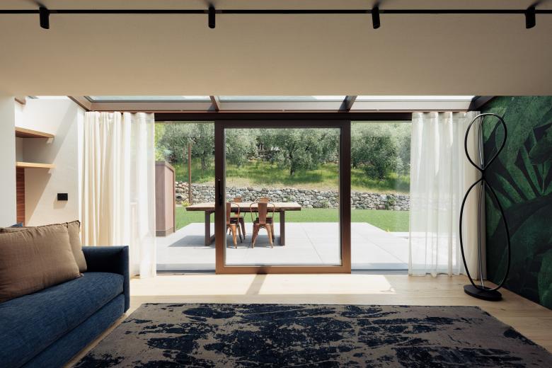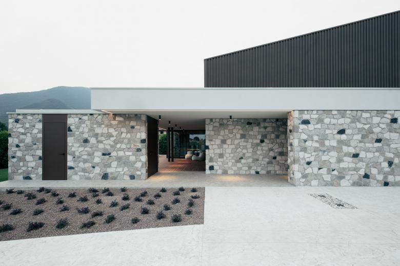 The project area is located at the entrance to the Valsugana, at the foot of the Grappa massif on a sloping terrain. The building is placed partially embedded in the ground in order to create different views and playing with the heights of the garden. The plan was developed with great care, in order to create spaces with different degrees of privacy and to make the most of the view towards the existing natural landscape, satisfying all the requests of the clients. The heart of the house is a jolly space, able to hold a collector’s vehicle and some canvases on rotation.