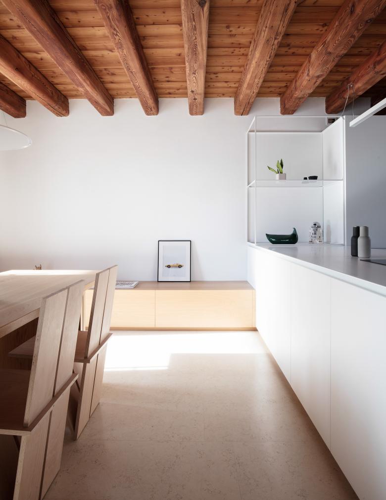 Progetto di interni per abitazione rurale della campagna veneta, costruita nei primi anni del 900 e restaurata nei primi anni 2000. Il progetto, pensato per le esigenze funzionali ed i gusti estetici del committente, cerca di esaltare i materiali di recupero usati nel restauro, come le travi in larice e le pareti strutturali originali in sasso e mattoni, con l'uso di materiali e tonalità semplici ed eleganti, applicati a forme geometriche pure.