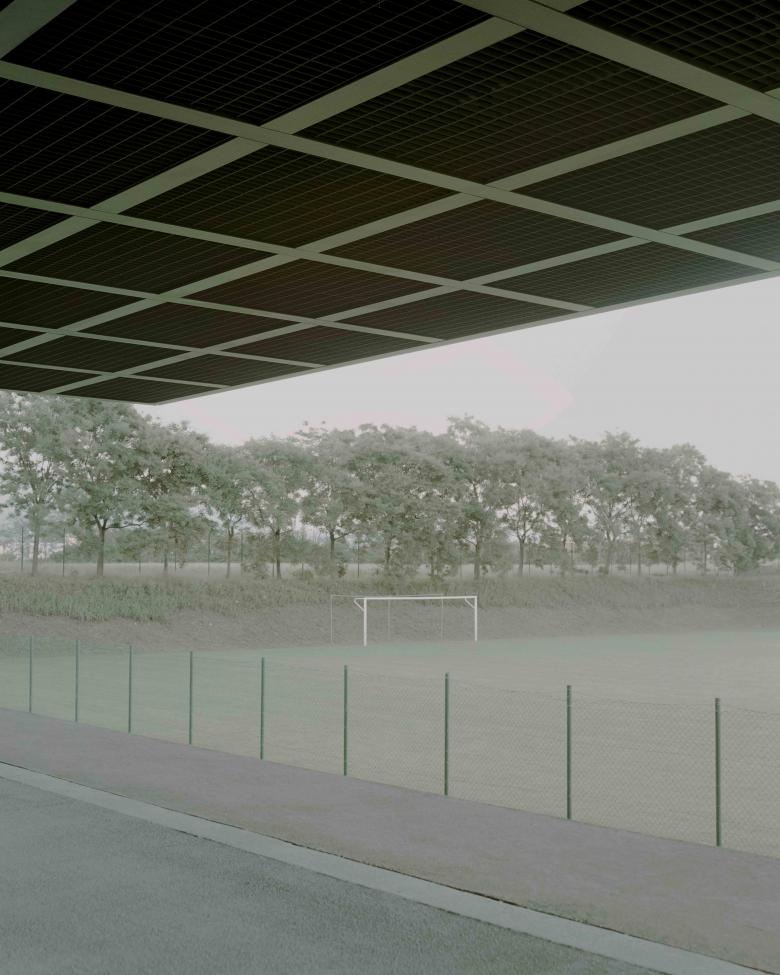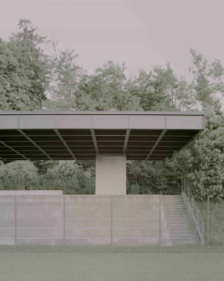 L’insieme di questi elementi forma una vista controllata dal campo da gioco, un ritaglio del contesto naturalistico che sta alle spalle delle tribune, ma allo stesso tempo offre allo spettatore una vista priva di impedimenti sull’attività agonistica, avvertendo un senso di protezione sotto la grande copertura scura.