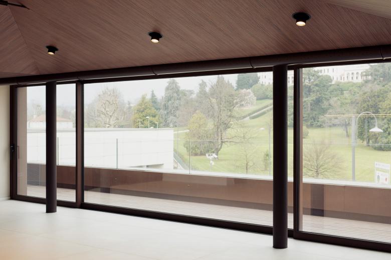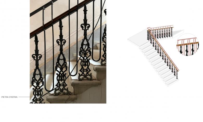 La sfida, in un processo di ridisegno di uno spazio architettonico preesistente, e? recuperare la memoria del luogo e armonizzarla con il nuovo programma. Si propone di mantenere la suddivisione e la gerarchia degli spazi tripartita secondo uno schema di impianto classico della tipologia della villa veneta. L’ascensore e le scale tra il piano terra e il primo piano vengono conservati integralmente e diventano il perno attorno al quale viene sviluppata la circolazione verticale. L’obiettivo e? quello di creare un ambiente contemporaneo che regali nuova vita all’edificio in equilibrio tra passato e presente: le murature perimetrali originali convivono con il sistema di rinforzo strutturale che puntualmente prevede l’inserimento di telai controventanti in acciaio all’interno di contropareti (lati nord e sud).