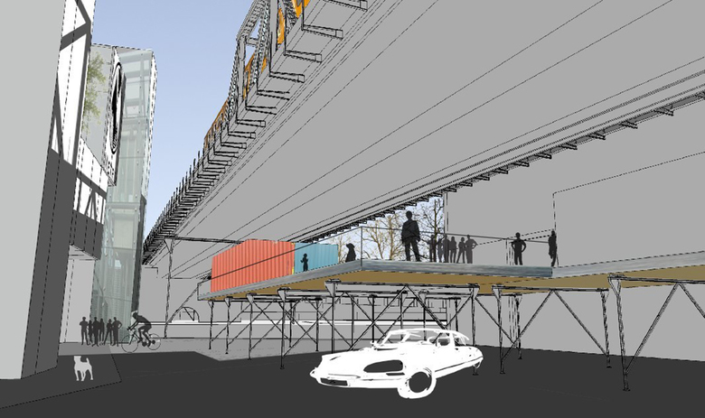 Im Sockelbereich befinden sich zwei- und dreigeschossige Einheiten, die einzeln erreichbar sind und einen direkten Bezug zu den ebenerdigen Freiräumen, Gartenhöfen und Gartenparzellen entwickeln.