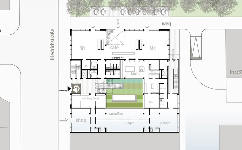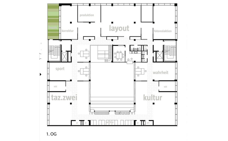 Redaktionsgebäude, Veranstaltungsräume, Café
