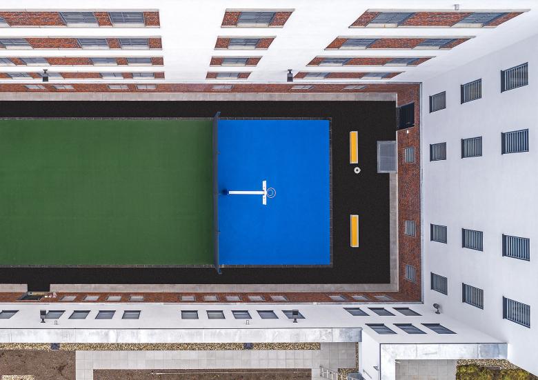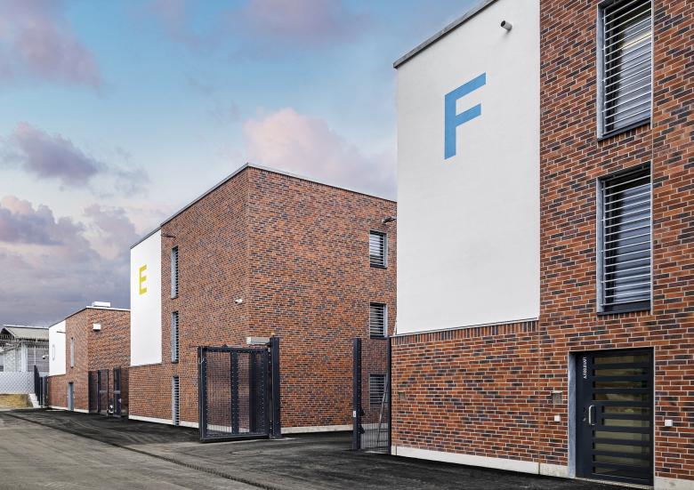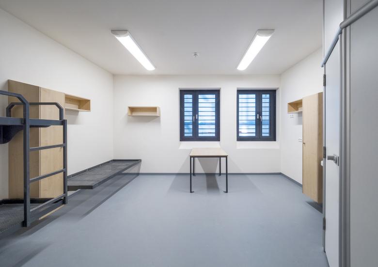 Der Neubau setzt sich aus mehrern Gebäudeteilen zusammen: Torwache mit Fahrzeugschleuse, Technikzentrale, Küchentrakt, den eigentlichen Unterkunftsgebäuden sowie einem Verwaltungstrakt mit Besucher-, Aufnahme-, Entlassungsgebäude und Gesundheitsfürsorge.