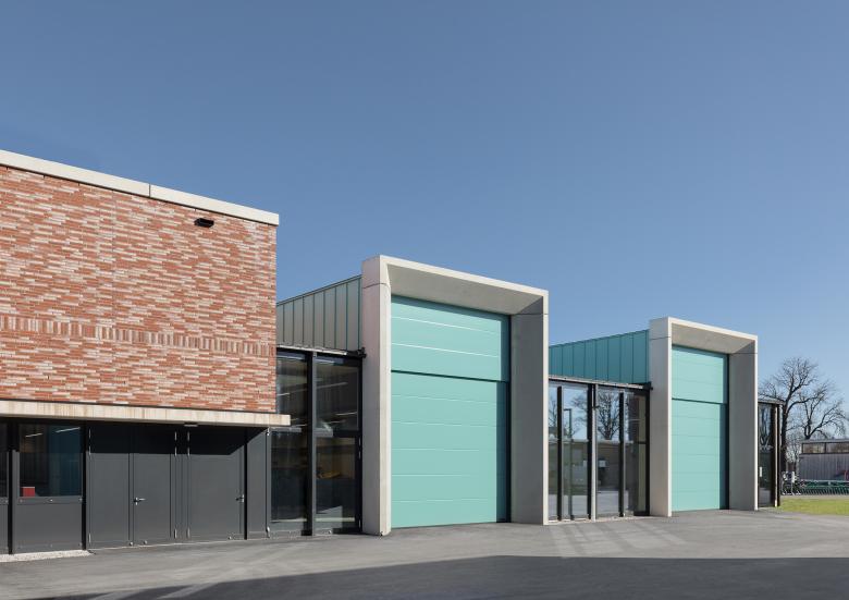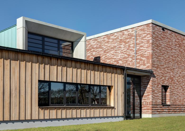 Eine Ausstellungsfläche und der Bereich für die Praxiserprobung geben zusammen viel Platz für die Lehre „ Regenerative Energien“ in der neu gebauten Energiehalle. Die historische Materialität, welche sich in den standortprägenden Mauern aus rotem Ziegel darstellt, wird in den Fassaden der Kopfbauten aufgenommen. Fortgesetzt wird diese Idee mit den Holzfassaden der Seminarräume, die Lehrhallen und die Energiehalle, um den Charakter der Scheunen und der Landwirtschaftlichen Nutzung im Außenkonzept aufzunehmen.
