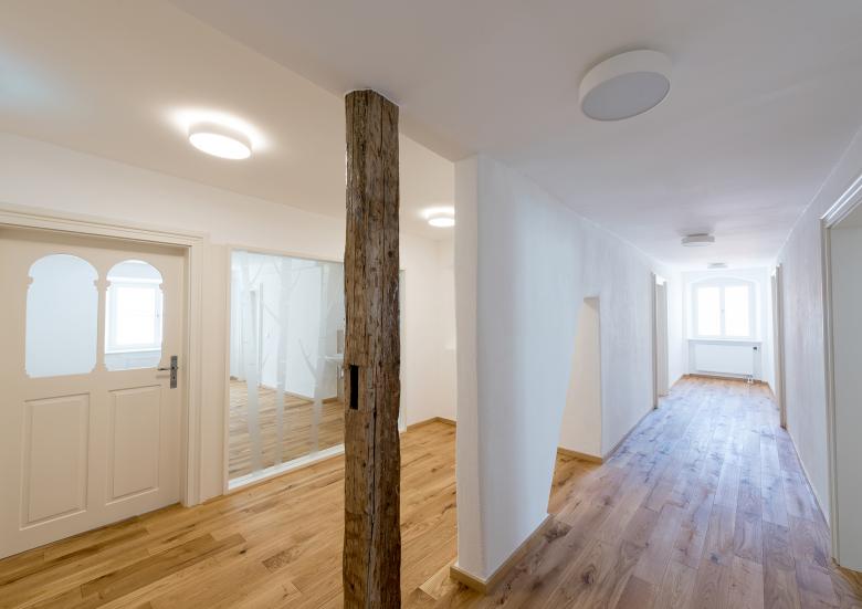 Der schöne historische Dachstuhl wurde restauriert und teilweise ergänzt.