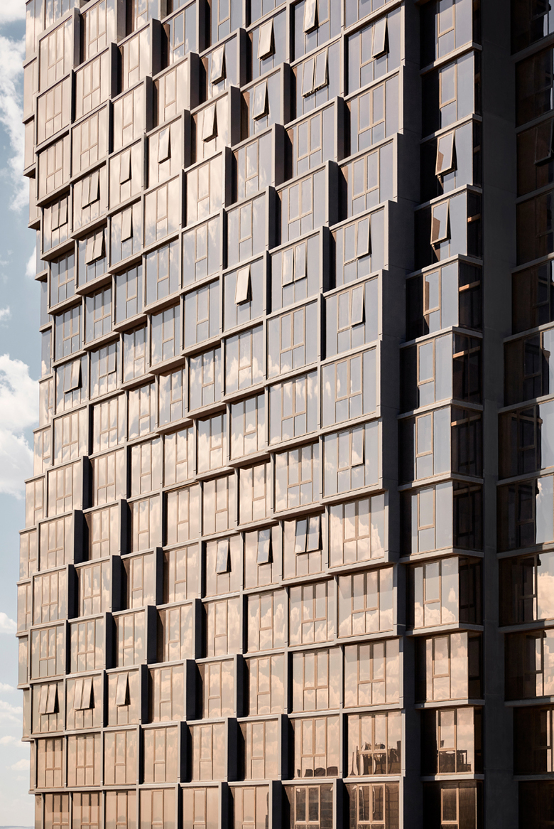 These drawers gives residents the chance to give their home an individual identity as well as coveted corner views up and down Russell Street, challenging conceptions of the homogeneity and limitations of apartment living. Each apartment has a presentation to the street, creating a collection of variably expressed individuals.