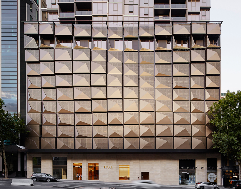 It’s no secret that everyone covets corner apartments. More light and better views, right? Well, not so with Abode318, our new Melbourne CBD residential apartment tower, where everyone gets a view: it’s democracy in action! Look closely at the wave-like 55 storey form and you will realise that each of the horizontal and vertical waves consist of individual rooms articulated as protrusions, creating the effect of a set of drawers pulled out at random.