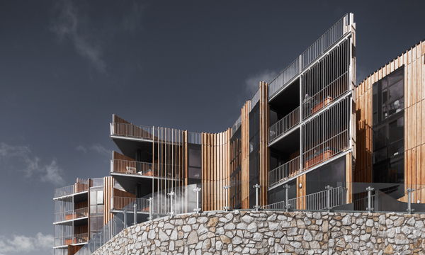 Quay West's timber cocoon is an important advance in building technology. The question was how to use timber in an alpine environment, given the rapid deterioriation of the material from the stress of temperature related expansion and contraction? Our answer: Redefining timber wall cladding as baton walls with slotted nail holes that allow the boards to expand and contract without drying or cracking.