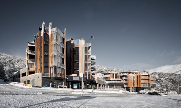 The building houses community functions that reconnect the village with the road, making amenities accessible for day visitors and long-stay tourists alike. By providing a clear front door, Quay West brought life back to the village, enabling it to address the requirement of Winter destinations to survive all year round. We connected the building to the street through the bus interchange and public square, as well as short-term parking, and it then meets the snow at the top via the building program which includes ski hire, real estate, gym, crèche, community meeting and function facilties, dining and a supermarket.