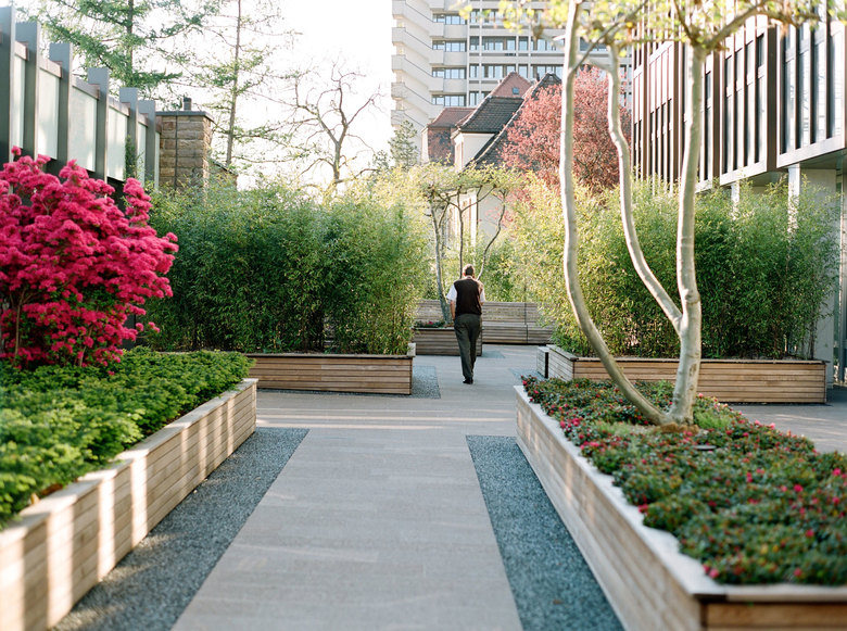 Ein ruhiges Ambiente für grosse Denker. Das Projekt bezog sich auf eine Fläche zwischen zwei Universitätsgebäuden, ein Fussgängerkorridor, der vor allem von Studenten benutzt wurde. Enea strukturierte den Raum mit Anziehungspunkten wo Menschen sich ausruhen, entspannen und versammeln können. Das Resultat beweist, dass die richtige Planung und Bepflanzung von Lebensräumen auch für Menschen in Eile einen Mehrwert darstellen kann.