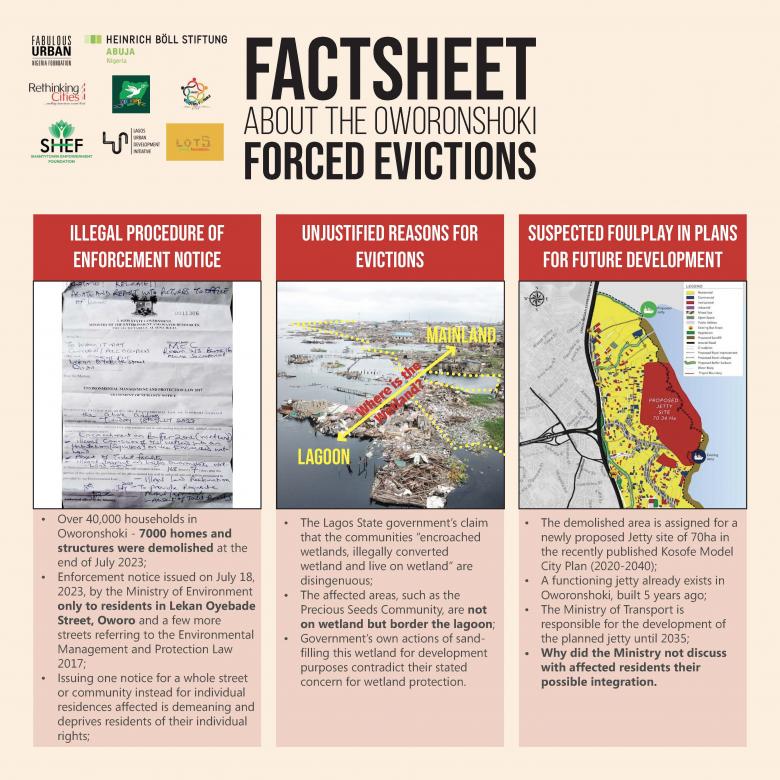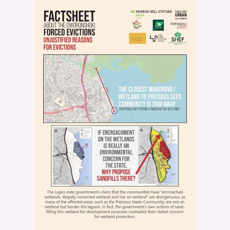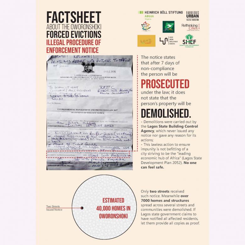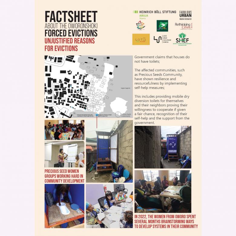 In collaboration with other NGOs, we continue the advocacy for the slum dwellers in all Oworonshoki. Partner organizations include: Rethinking Cities, Shantytown empowerment foundation, CEE-Hope, Oworo Youth forum, Lot5 Charity foundation, Lagos Urban Development Initiative, and Heinrich Böll Stiftung Abuja.