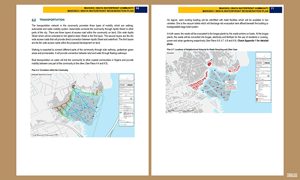 The Makoko/Iwaya Waterfront Regeneration Plan set goals for physical, economic and social revitalization for the community under 11 Chapters: