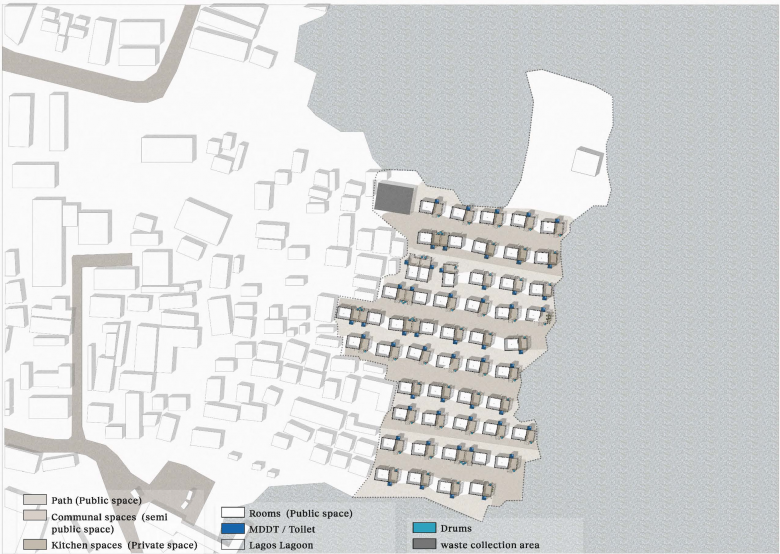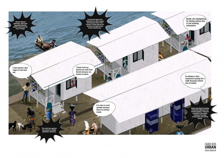 The reconstruction scheme for Precious Seed, a community in the Oworonshoki neighborhood that was heavily affected by the brutal demolitions by the state and the local king, is characterized by its simple, affordable, and modular design at all scales.