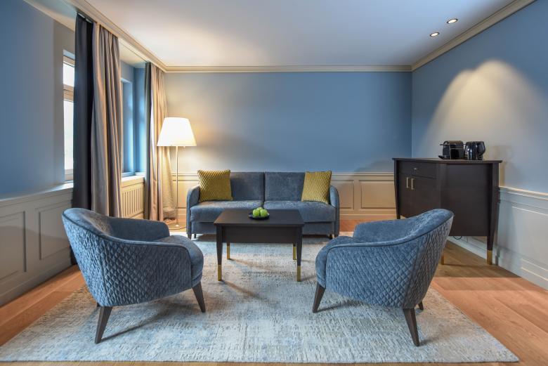 Die neuen Zimmer des Cresta Palace Hotels begeistern mit einer gelungenen Verbindung von zeitloser Eleganz und modernem Komfort. Durch liebevolle Details wie Brusttäfelungen, Profilierungen und eine geschmackvolle Farbgebung wird die Raffinesse der Gründerzeit aufgegriffen, ohne dabei kitschig zu wirken. Jedes Zimmer strahlt eine behagliche Atmosphäre aus und lädt die Gäste dazu ein, sich vollkommen zu entspannen und den Aufenthalt in vollen Zügen zu genießen.