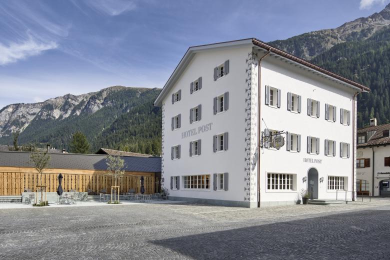 An sehr prominenter und zentraler Lage steht das Hotel Post am Postplatz in Andeer. Trotzdem ist der Spagat zwischen Hotel, Dorfbeiz und Gourmet-Restaurant nicht einfach und wirkt sich auf die Bilanz aus. Der Besitzer ist in diesem Haus aufgewachsen und hat den Wandel des Hauses miterlebt. Der Betrieb war für ihn in jungen Jahren eine grosse Stütze und er möchte das baufälligen Hotel mit einer Totalrenovierung zu neuem Leben erwecken und ihm so seinen Dank und Respekt erweisen. Die historische Raumstruktur mit dem zentralen Korridor definiert die acht Hotelzimmer und zwei Suiten. Private Nasszellen in jedem Zimmer und ein Lift erhöhen den Wohnkomfort für die Gäste. Ein vielfältiges Erlebnis bieten eine Dorfbeiz und das Gourmet-Restaurant an. Unter den historischen Gewölben des Untergeschosses lädt ein Weinkeller zu geselligen Abenden ein. Der Anbau der Holzremise mit Gourmet-Restaurant und die Aussenterrasse bringen frischen Wind ins Dorfzentrum vom Andeer.