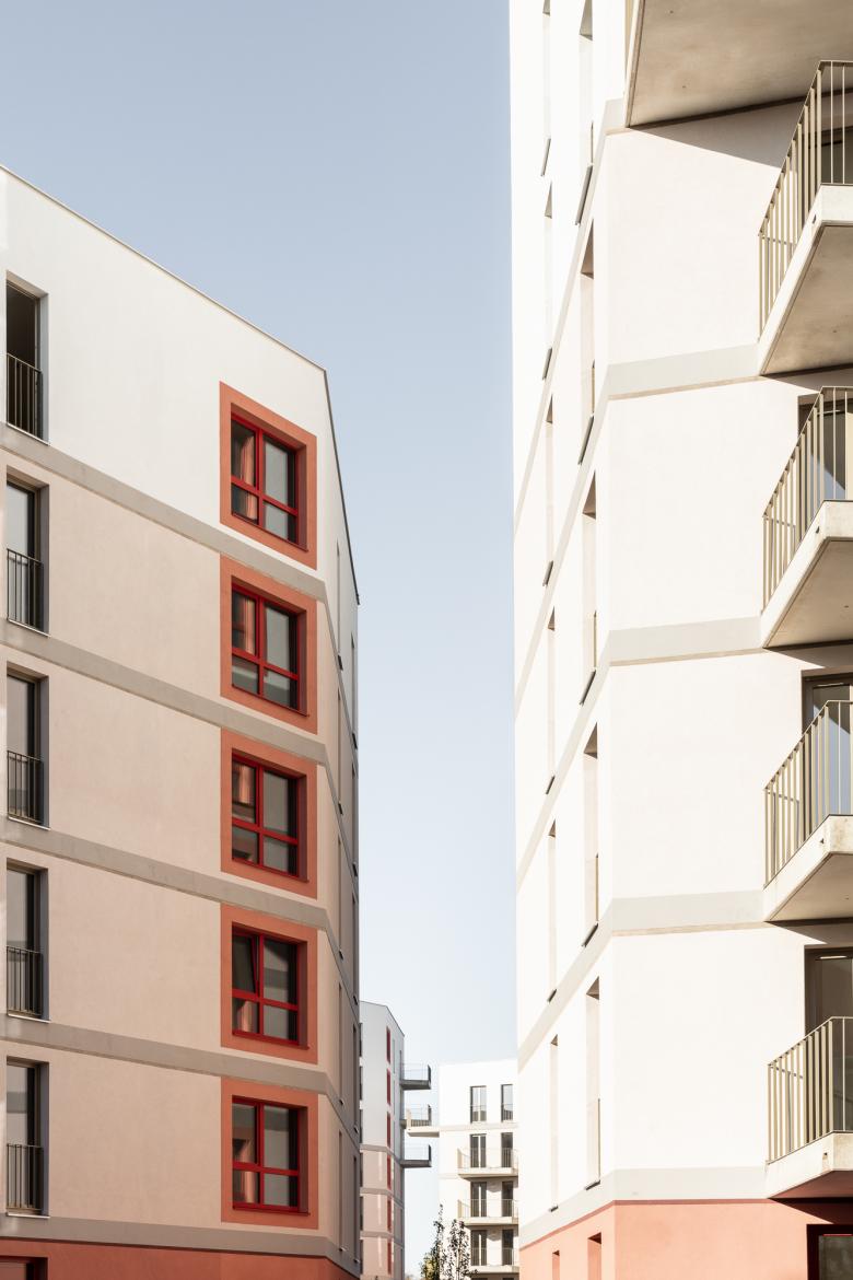 Der Kapellenhof im 22. Bezirk bietet leistbares Wohnen bei hoher Lebensqualität. Der perforierte Blockrand mit einem großzügigen Innenhof erinnert an den traditionellen Wiener Gemeindebau. Die Wohnungen bieten helle Räume, Weitblick und Grünraum. Der Hof im Zentrum der Anlage gestaltet sich abenteuerlich offen, bietet einen fließenden Übergang von Rückzugsflächen und Plätzen, die zur sozialen Interaktion anregen. Hofseitige Hauseingänge bilden mit dazugehörigen Gemeinschaftsträumen und Gemeinschaftsterrassen ein einladendes Ensemble. Ein erhöhter Sockel, der die Masse der Baukörper erdet, die stringente französische Fenstergliederung in der Hauptfassade, polygonale Balkone gemeinsam mit der Farbigkeit der unterschiedlichen Elemente erzeugen eine Homogenität in einer heterogenen Umgebung.